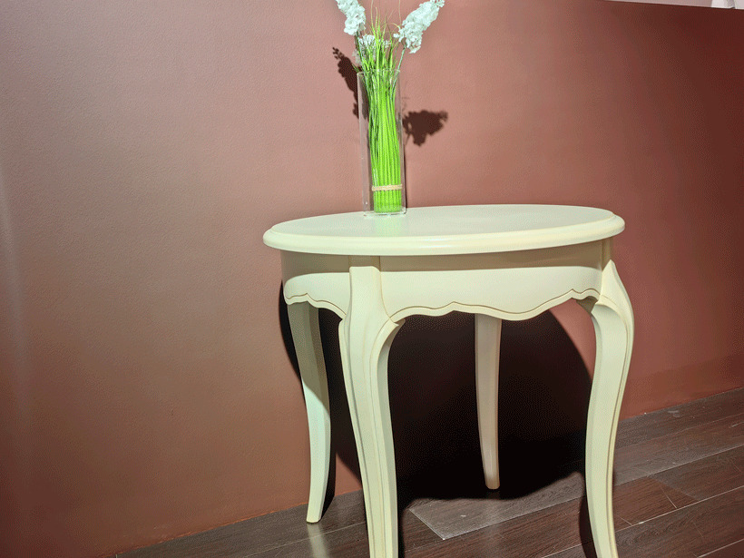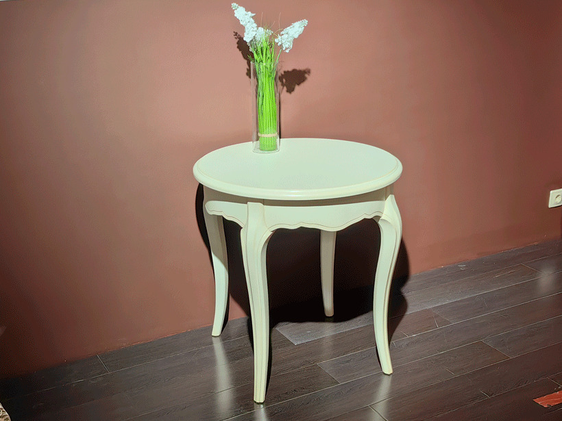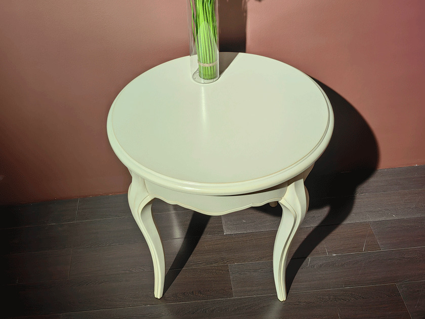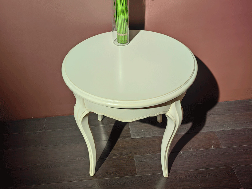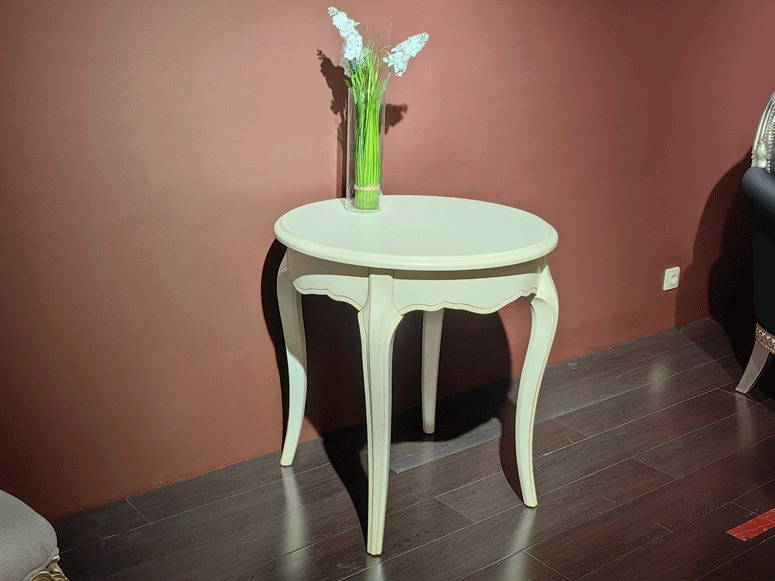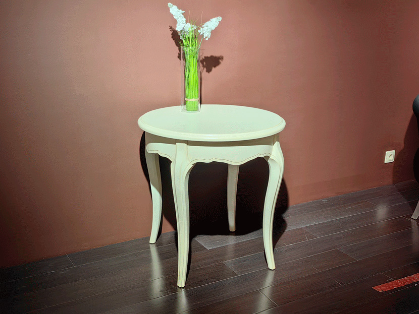Предлагаем красивый, круглый кофейный столик прованс из массива красного дерева, в наличии по распродаже в мебельном салоне. Благодаря своей достаточно большой высоте, кофейный стол может с успехом использоваться как приставной столик у боковой части диванов, а также в кофейных группах между двумя креслами. Столик требует сборки. Цвет слоновой кости с легким искусственным старением (легкое патинирование) в виде потертостей на углах и выступающих частях. Блеск поверхности - шелковистый. На заказ возможен перекрас мебели в любой цвет в эмаль по шкале RAL. Стоимость перекраски мебели составляет 16% от цены без скидки. При перекраске возможно нанесение различных спец эффектов по пожеланию заказчика. Распродажа красивой мебели прованс из дерева.