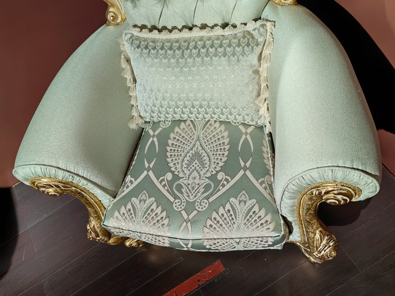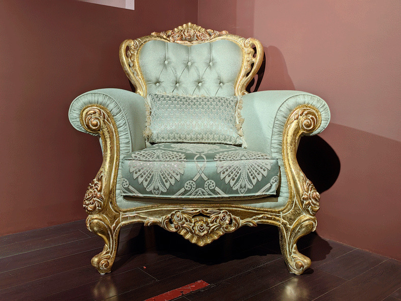 Предлагаем купить красивое классическое кресло Людовик из массива бука в золоте, в классической ткани с рисунком от поставщика мебели премиум класса. Материалы - массив бука, золотой лист (поталь), эмаль, глянцевый лак, различные турецкие ткани и кожи. Продажа красивых классических диванов и кресел из дерева