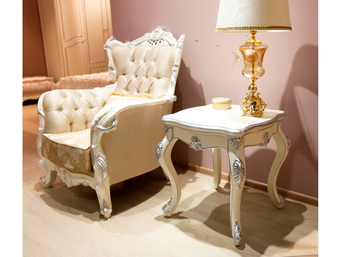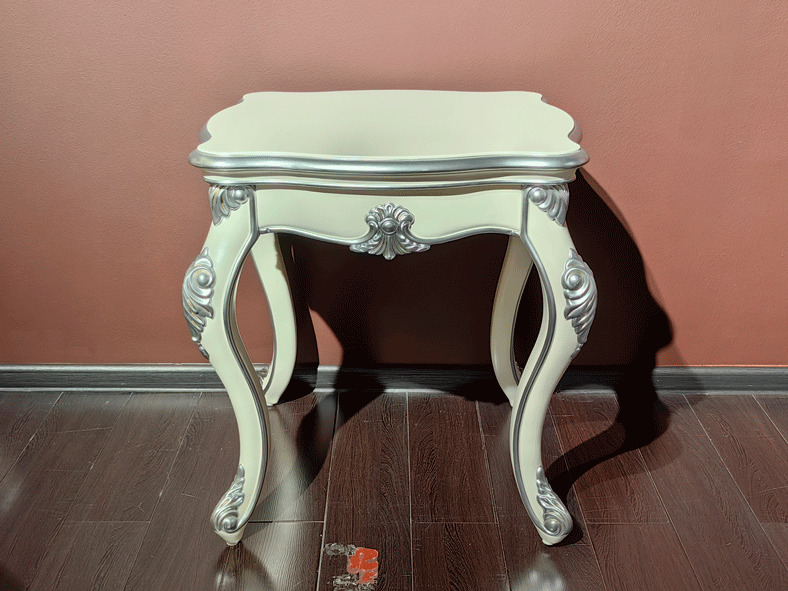 Предлагаем красивый, классический, белый, квадратный кофейный столик на гнутых ножках, из массива дерева бука, в цвете слоновой кости от поставщика мебели премиум класса. Блеск поверхности - шелковистый. Мебель высокого уровня качества. Столик идеально будет смотреться между двумя креслами, или сбоку от дивана. Материалы - массив каучукового дерева, МДФ, эмаль цвета слоновой кости, с отделкой серебром, золотом (на заказ) - по резьбе, а также возможно нанесение эффекта старения по резьбе (патины различных цветов). Продажа классической белой мебели премиум класса из дерева.