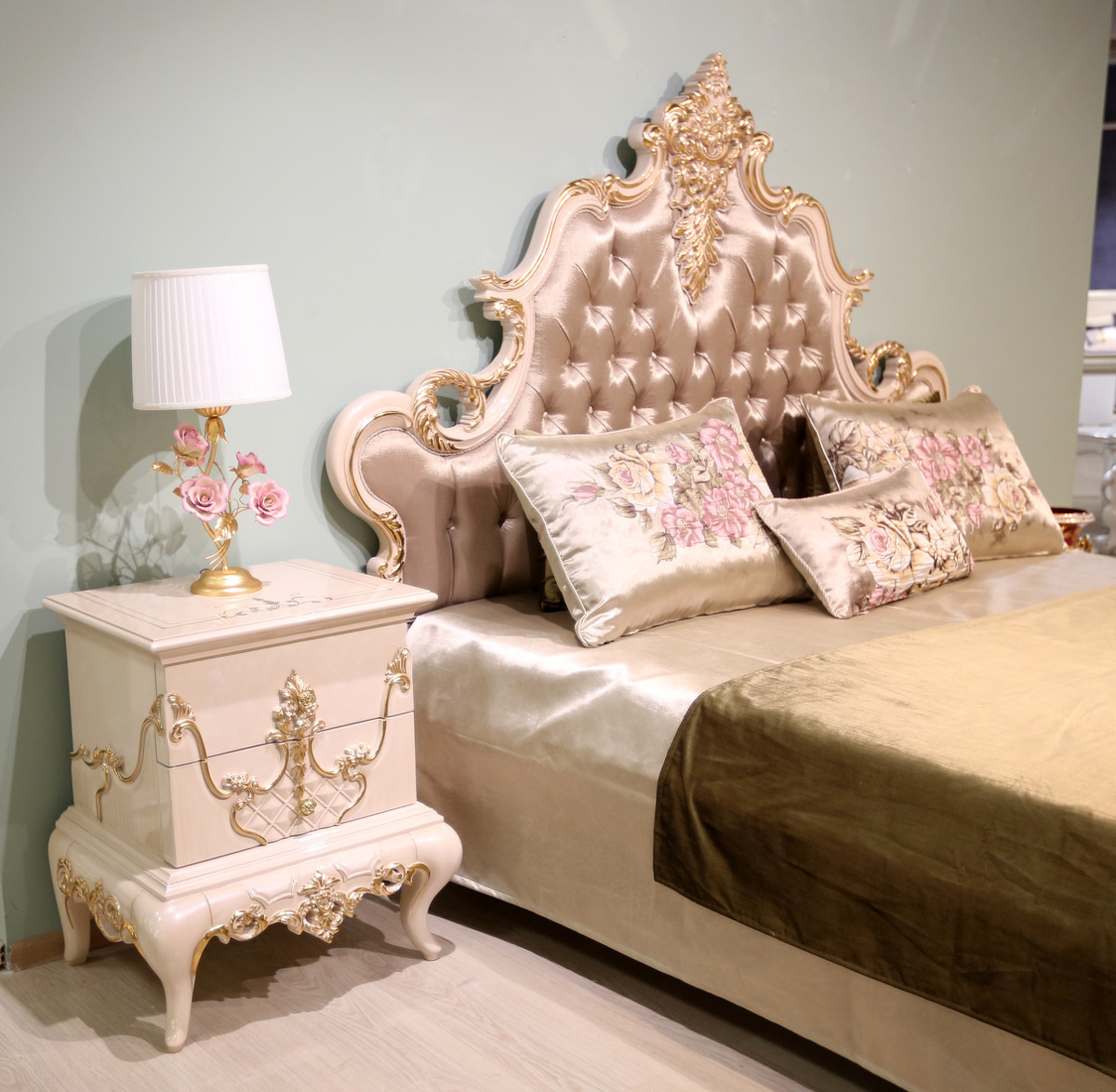 Классическая двуспальная кровать в цвете слоновая кость под матрас 180 х 200 см в качественных турецких тканях на заказ из Турции. Материалы: каркас - массив бука, резьба - жидкий МДФ по немецкой технологии, эмаль, золотая, серебряная поталь, глянцевый лак. Ткань и окраска дерева могут быть изменены в соответствии (по аналогии) с другой мебелью этой фабрики. Решетка приобретается отдельно.