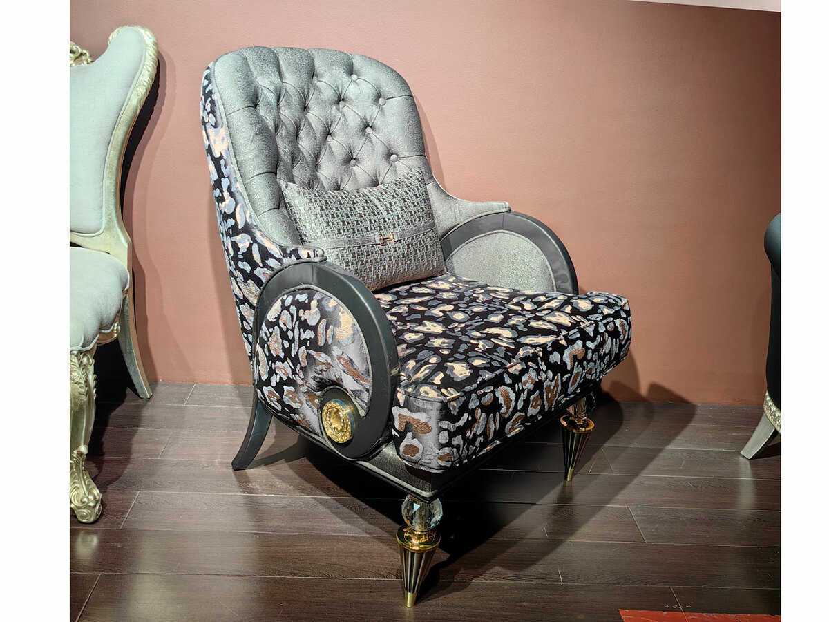 Предлагаем купить современное кресло с золотыми медальонами, круглыми подлокотниками, в качественных турецких тканях от поставщика турецкой мебели премиум класса на заказ. Реплика итальянской мебели. К креслу могут быть предложены диван, журнальный и кофейный столы. Материалы: каркас - массив бука, латунь, стекло, глянцевый лак. Ткань и окраска дерева могут быть изменены в соответствии (по аналогии) с другой мебелью этой фабрики.