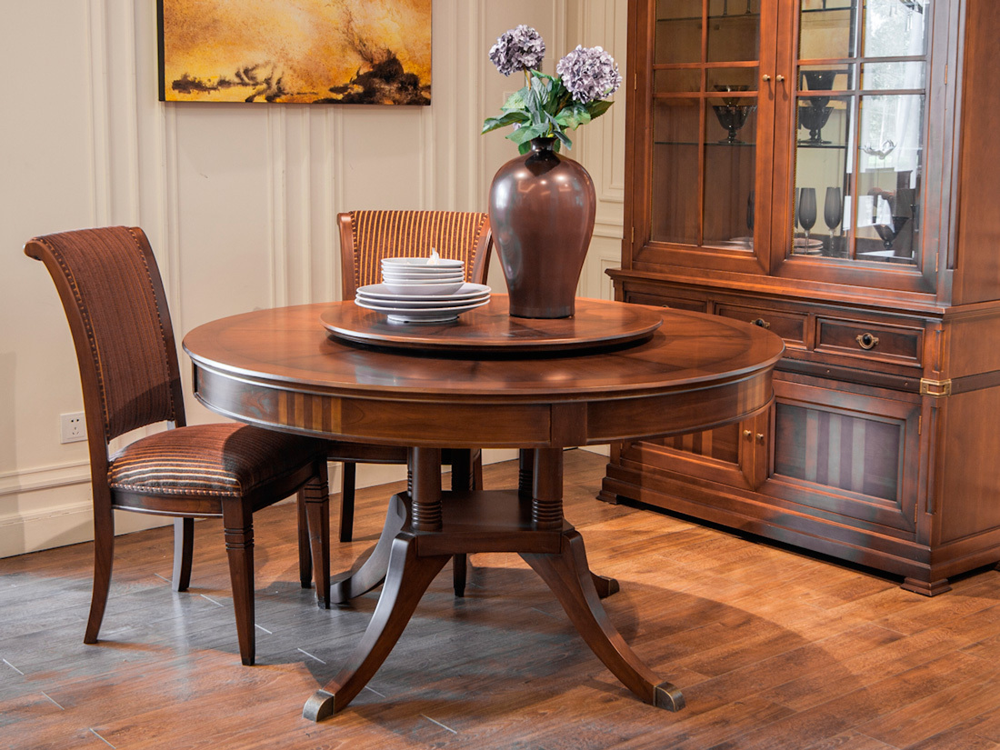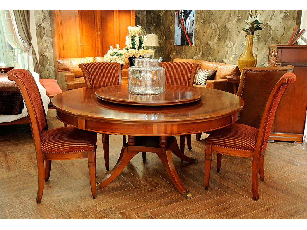 Предлагаем купить красивый английский круглый обеденный стол из массива ореха и вишни в мебельном салоне Москвы. Реплика итальянской мебели. Исключительное качество производства на уровне лучших итальянских фабрик. Покраска под старину с патиной. Данный стол на заказ может быть и 1600 мм в диаметре. Центральная менажница вращается, что очень удобно, когда за столом сидят несколько человек. Цвет: орех, темная патина. Блеск поверхности - шелковистый. Поставка и продажа дорогой английской мебели для гостиной.