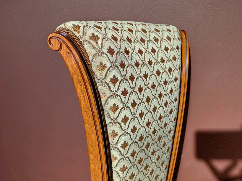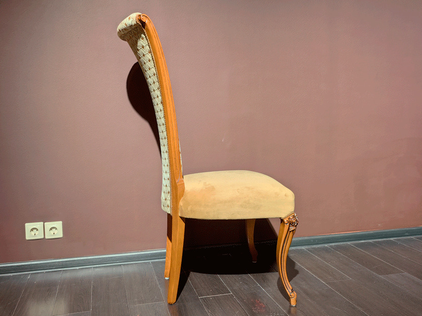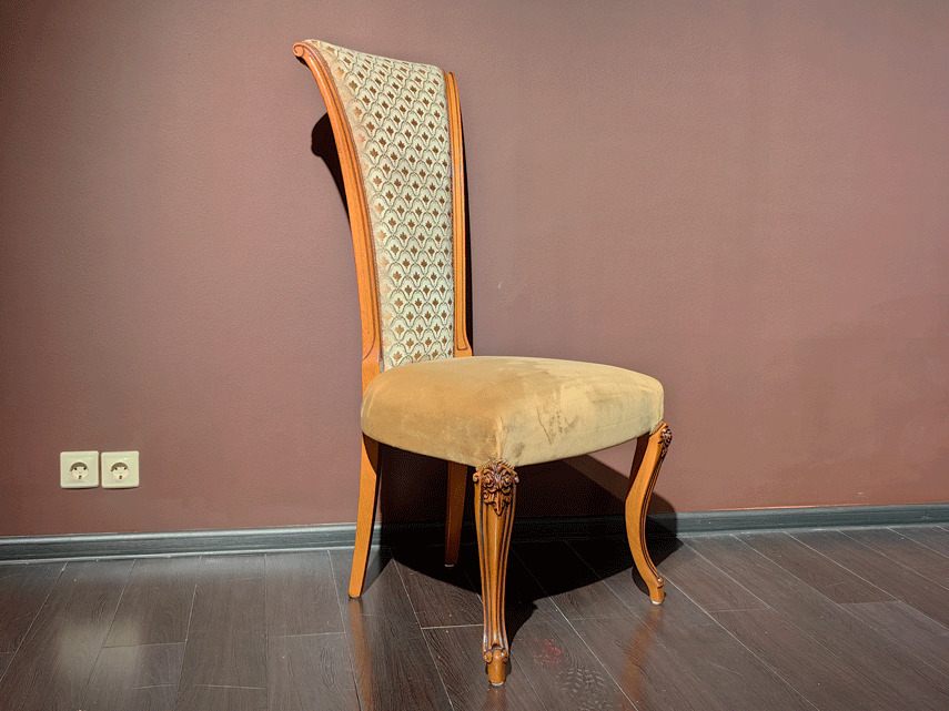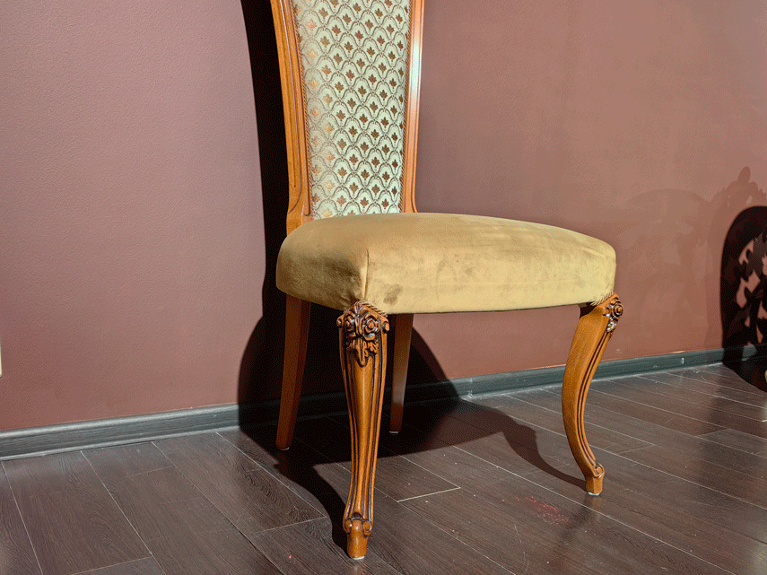 Предлагаем купить итальянские обеденные стулья из дерева фабрики Марио Джан Паоло в количестве 4х штук. Очень удобная, мягкая посадка, превосходные итальянские ткани, итальянское качество. К данным стульям подойдет круглый обеденный стол SM-712. Продажа классических обеденных столов и стульев премиум класса из дерева.