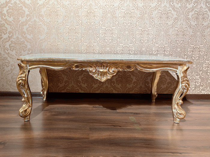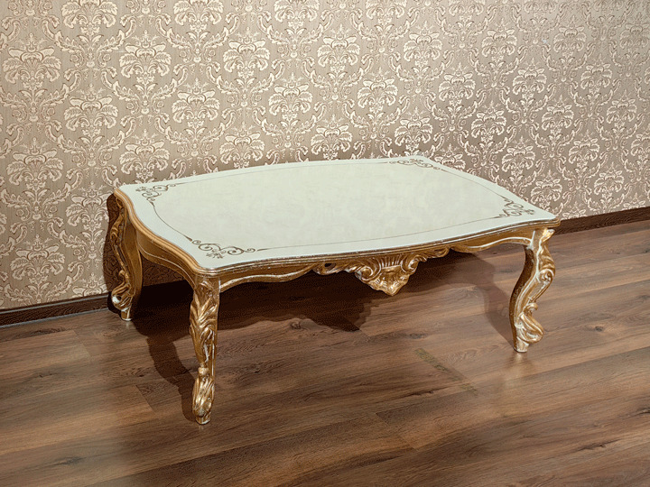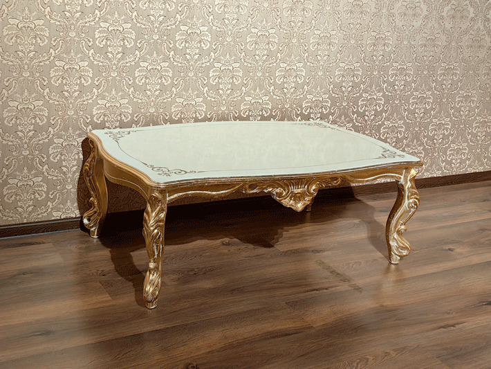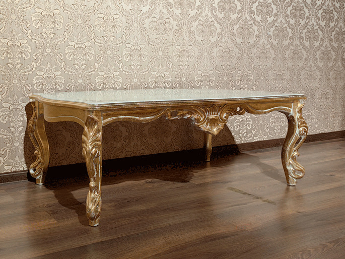 Предлагаем купить классический, прямоугольный журнальный стол в золотой потали из массива бука. К столу предлагаются диваны и кресла из коллекции Адриатика. Посетите раздел нашего сайта "Классические диваны и кресла".