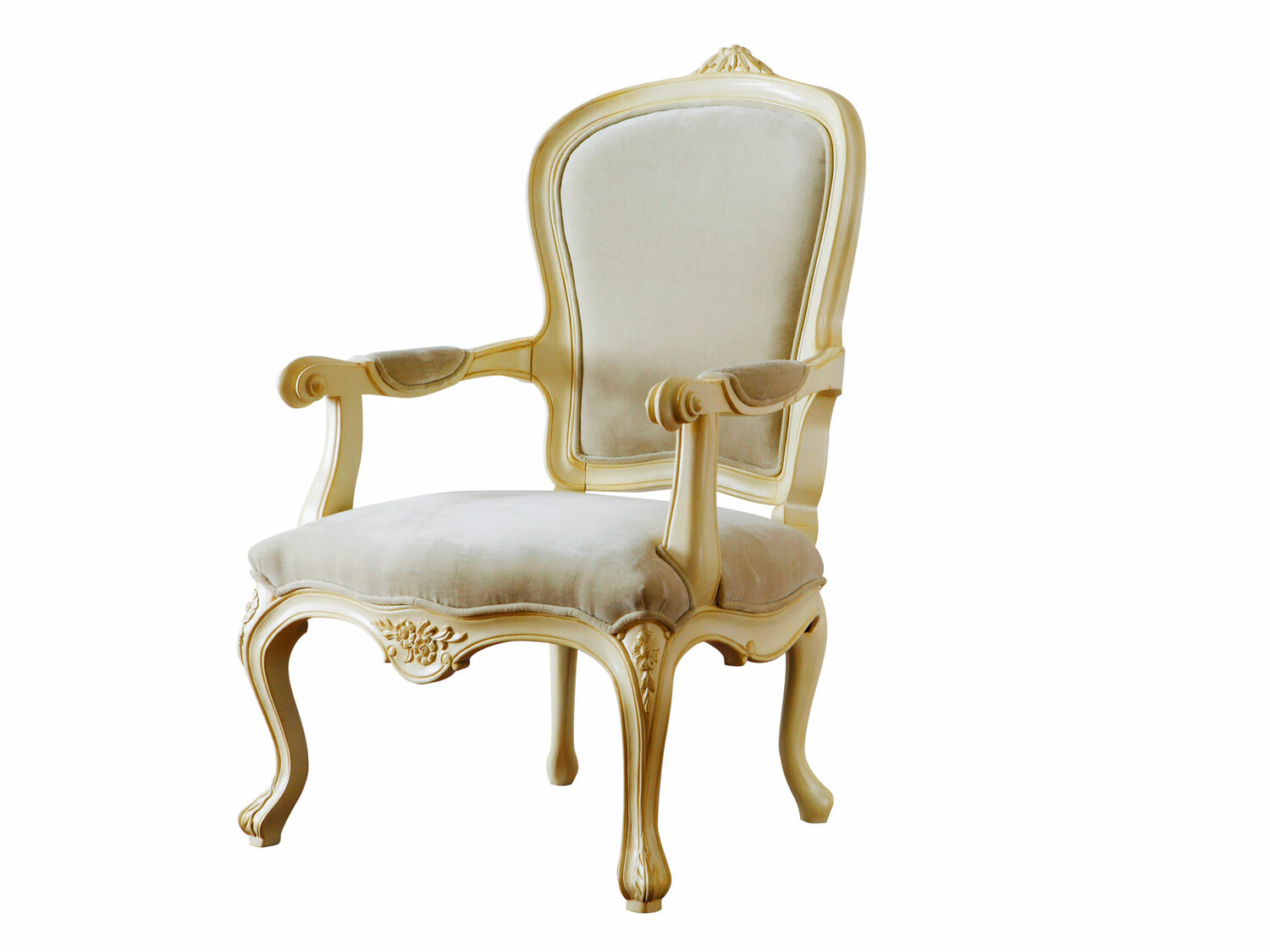 Предлагаем купить удобное кресло прованс из массива дерева, в светло бежевом бархате. Цвет дерева - слоновая кость с легкой патиной. Премиальное качество изготовления. Кресло представлено в единственном экземпляре. Распродажная цена.