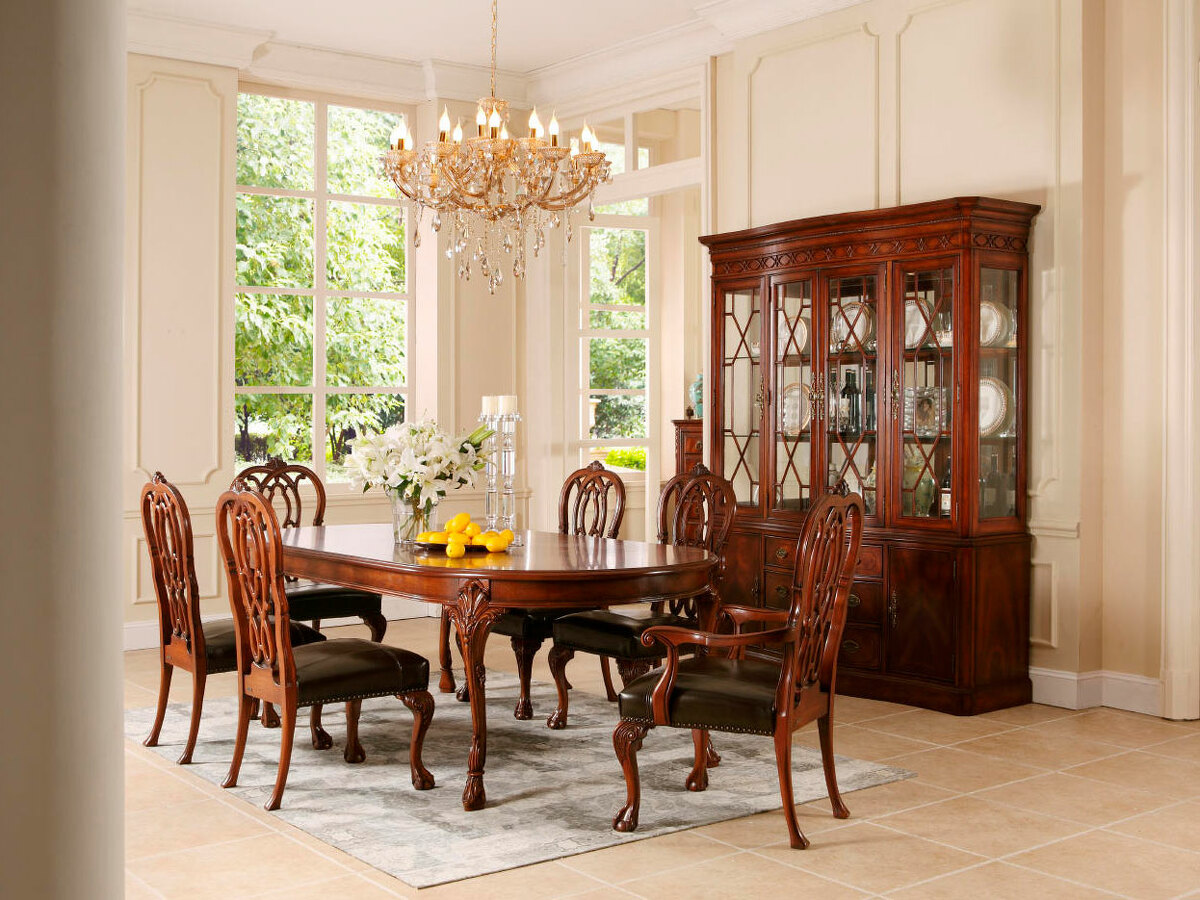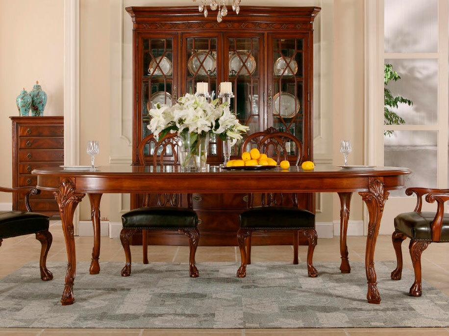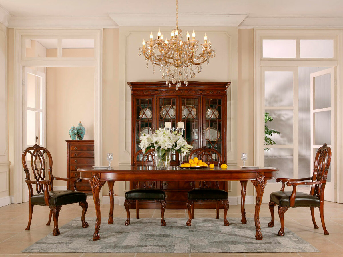 Предлагаем купить большой классический овальный обеденный стол из массива красного дерева. К столу предлагаем различные обеденные стулья с возможностью изамены ткани на них на ткань покупателя. Исключительное качество производства. Покраска: цвет орех с патиной, шелковистый блеск поверхности. Продажа красивой классической мебели премиум класса для гостиной.