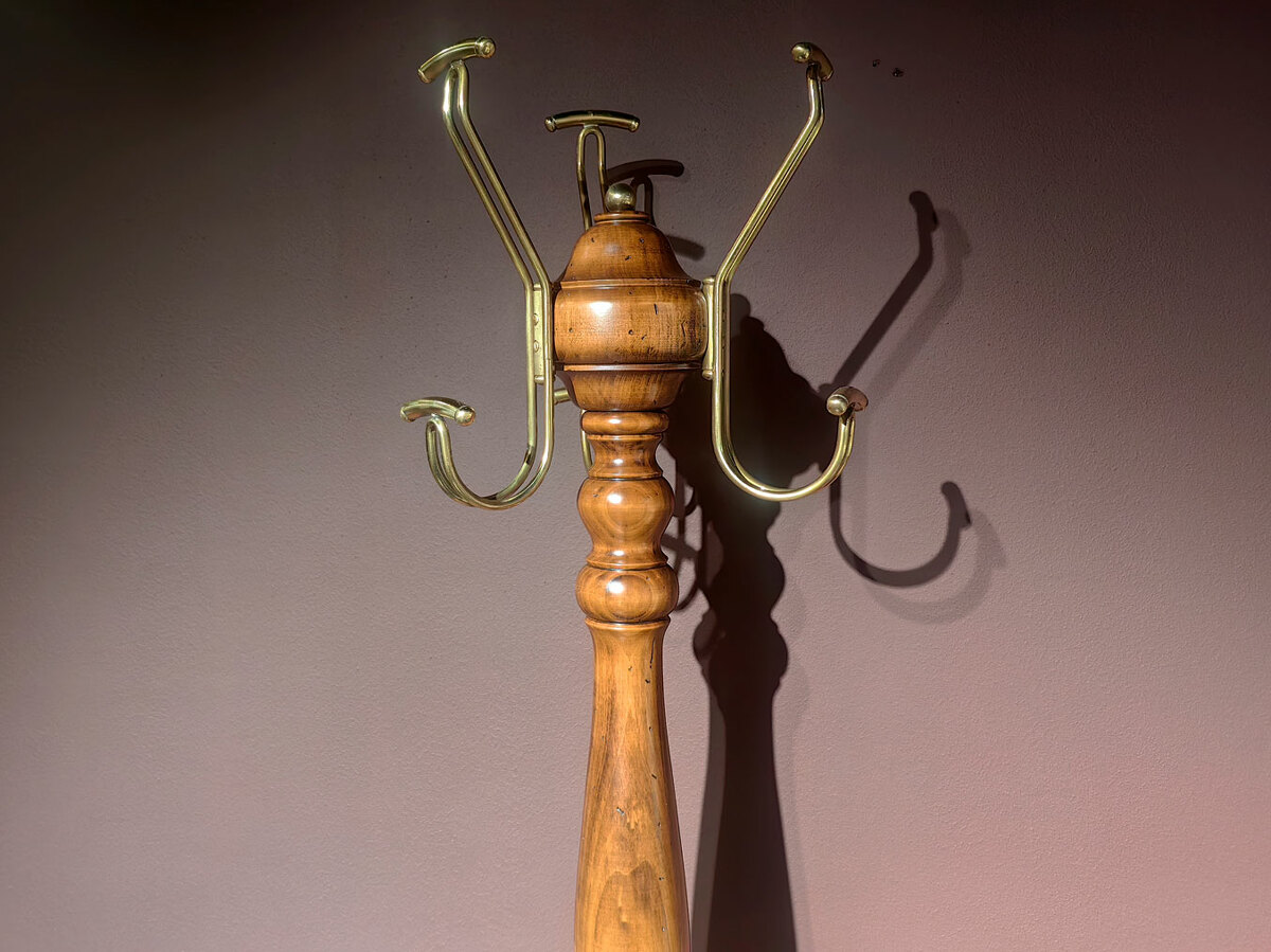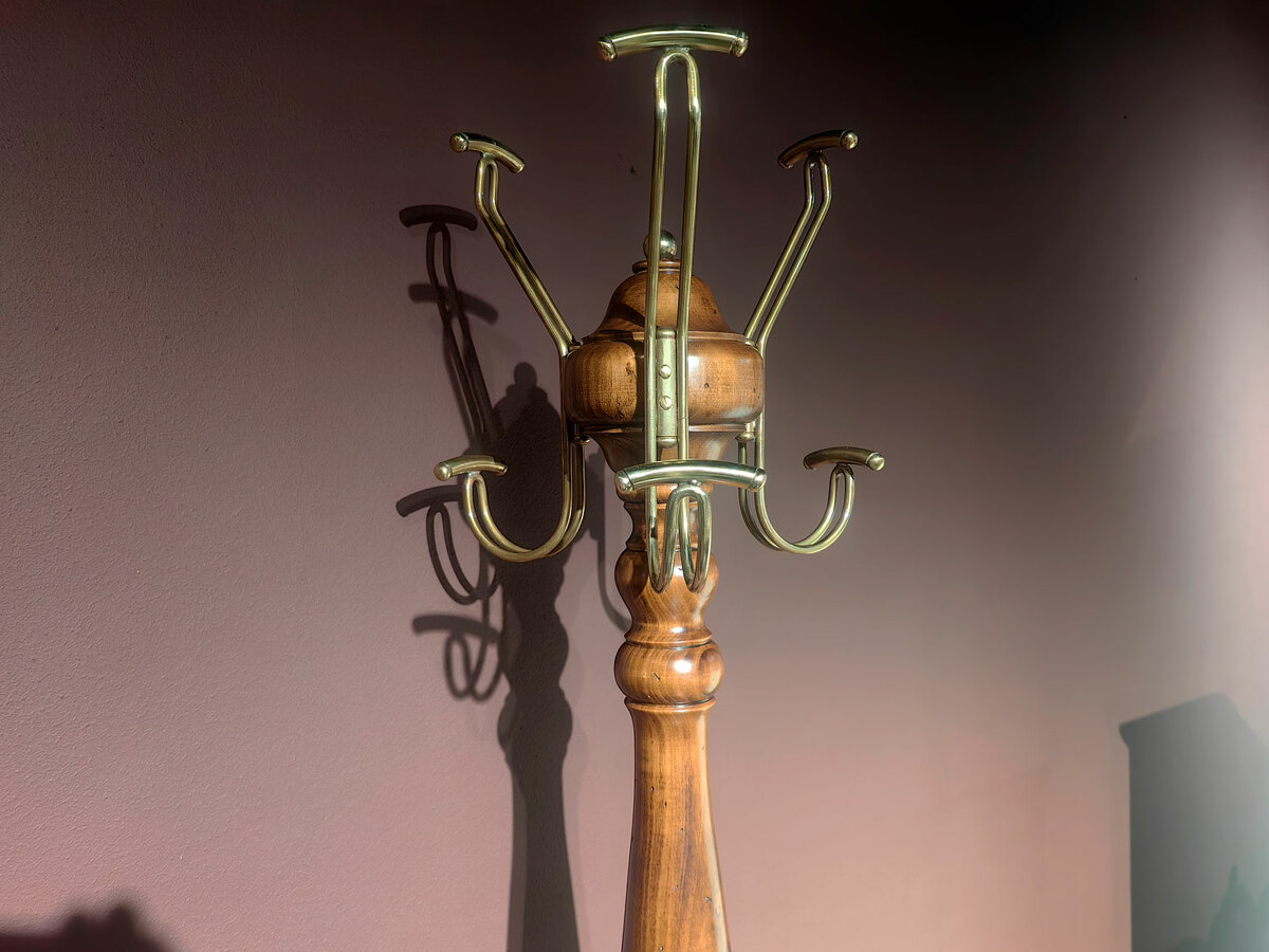 Предлагаем купить напольную, классическую, деревянную вешалку для одежды производства итальянской фабрики Cappanni. Вешалка в объемных формах массивная и тяжелая, поэтому будет устойчиво стоять на полу и сможет выдержать нагрузку большого количества одежды. Премиальное качество изготовления. Покраска с патиной и эффектом "короед". Блеск поверхности - шелковистый.