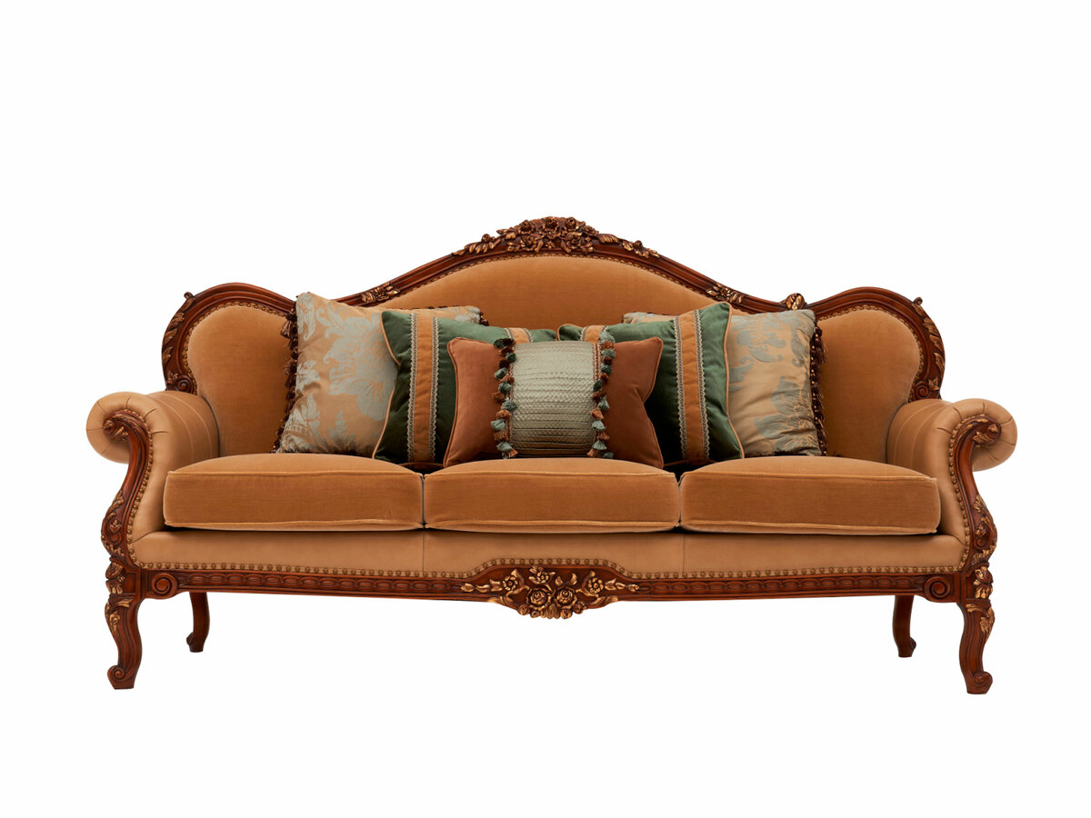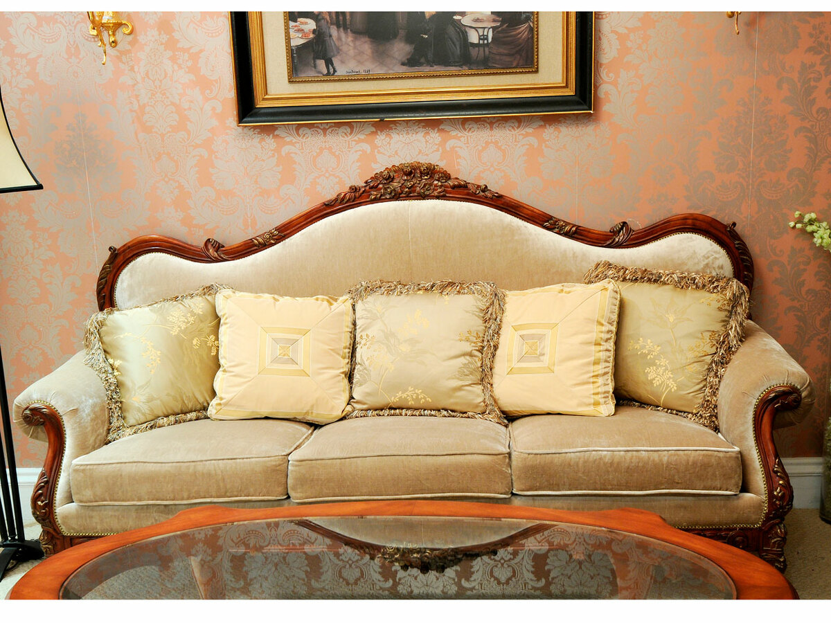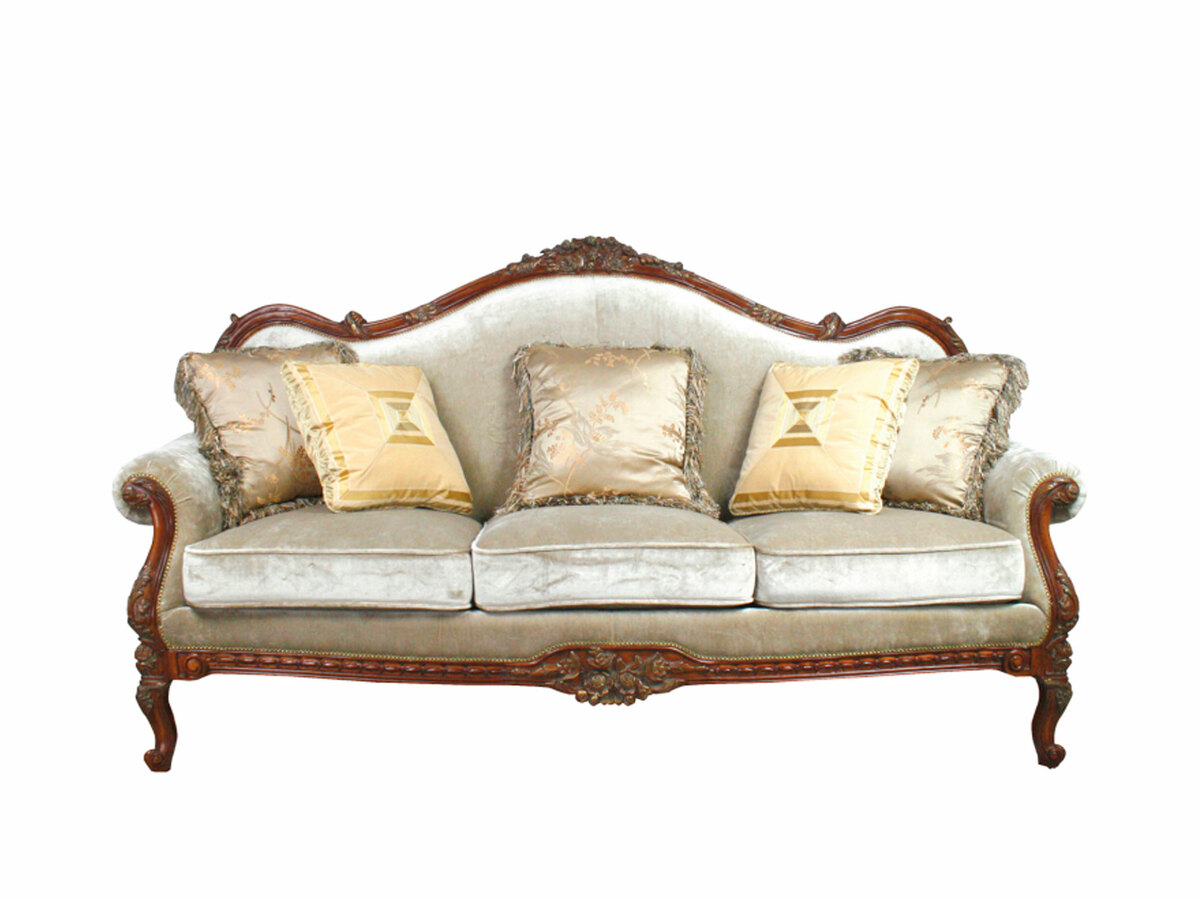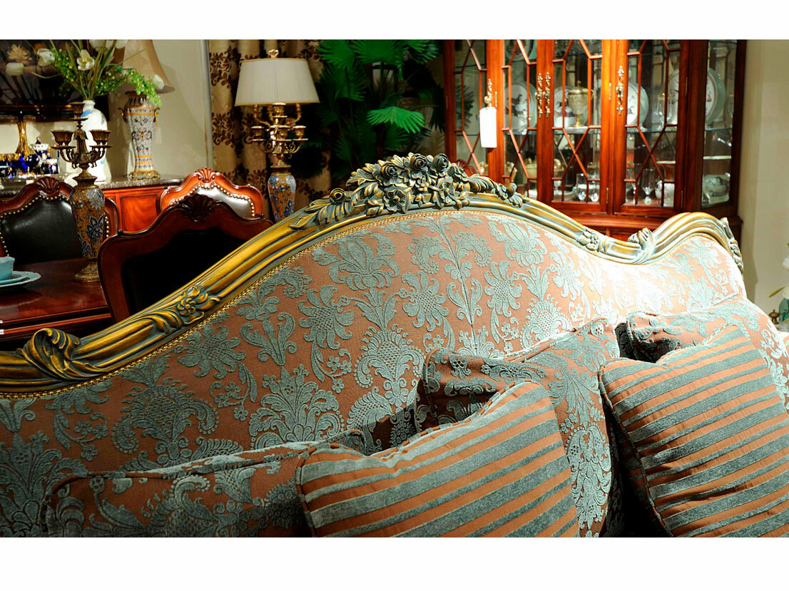 Предлагаем купить роскошный, не большой, классический трех местный диван из массива красного дерева в цвете орех с патиной. Также возможна покраска в цвет античной бронзы, античного золота и слоновой кости с выделением резьбы серебряной или золотой поталью. Премиальное качество изготовления (лучшая фабрика Китая по классической мебели). В данный комплект мягкой мебели также входят 2 вида кресел, подставка для ног и трех местный диван, а также журныльный и кофейные столы. Продажа классической мягкой мебели премиум класса.