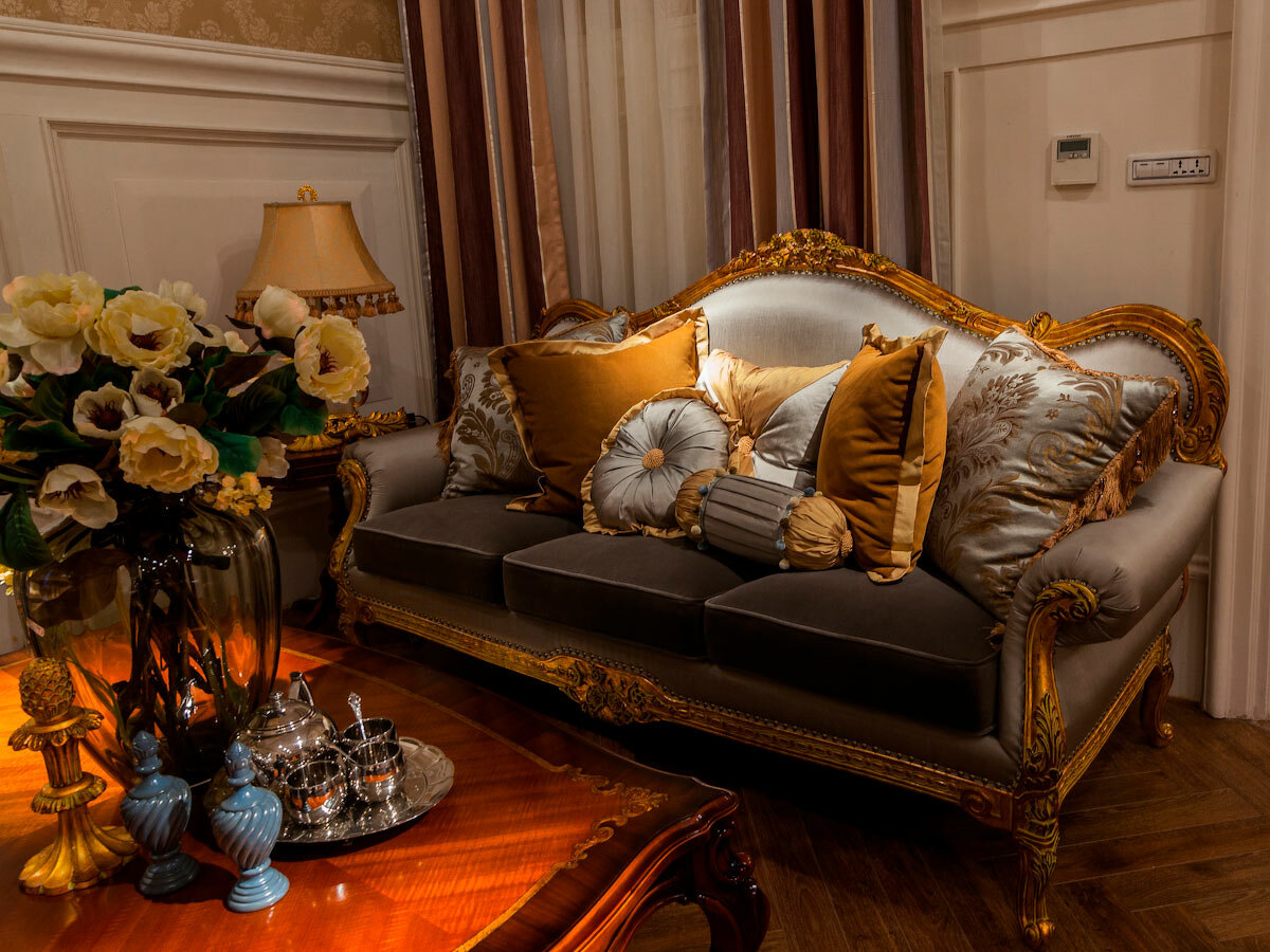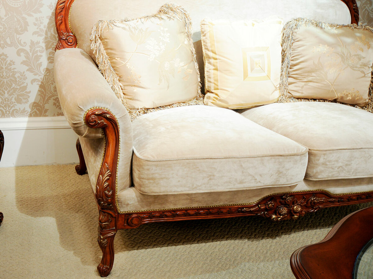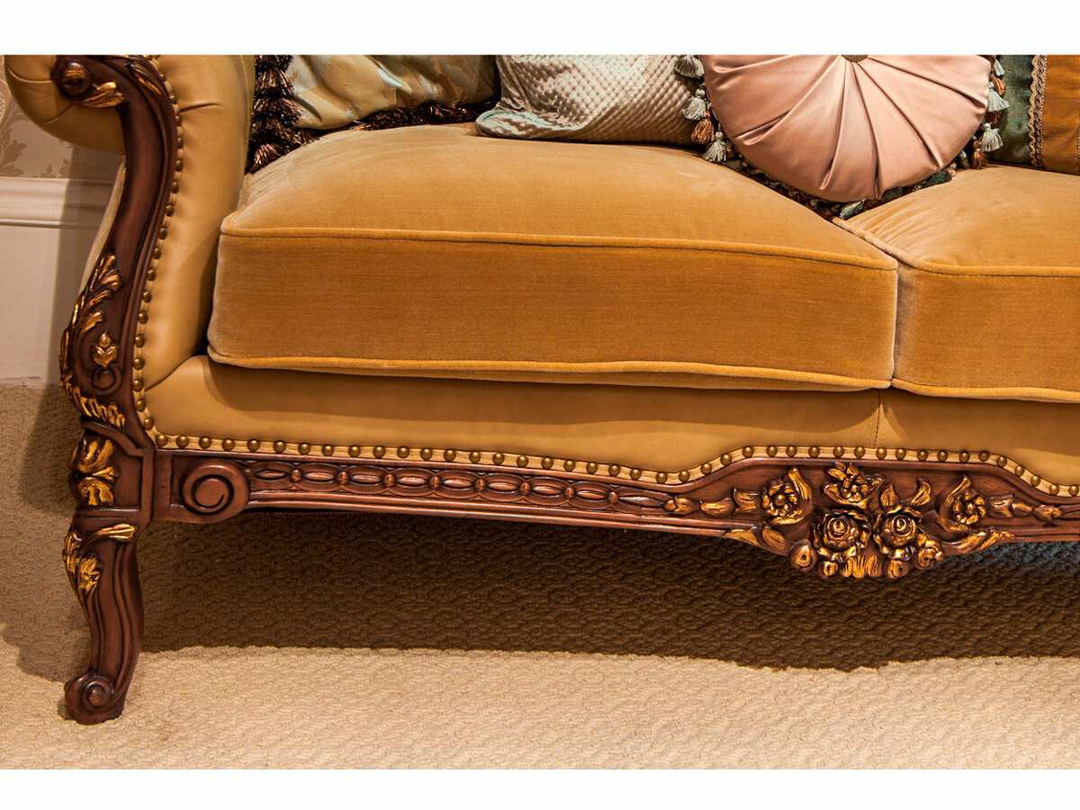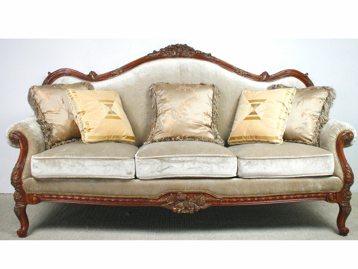 Предлагаем купить роскошный, не большой, классический трех местный диван из массива красного дерева в цвете орех с патиной. Также возможна покраска в цвет античной бронзы, античного золота и слоновой кости с выделением резьбы серебряной или золотой поталью. Премиальное качество изготовления (лучшая фабрика Китая по классической мебели). В данный комплект мягкой мебели также входят 2 вида кресел, подставка для ног и трех местный диван, а также журныльный и кофейные столы. Продажа классической мягкой мебели премиум класса.
