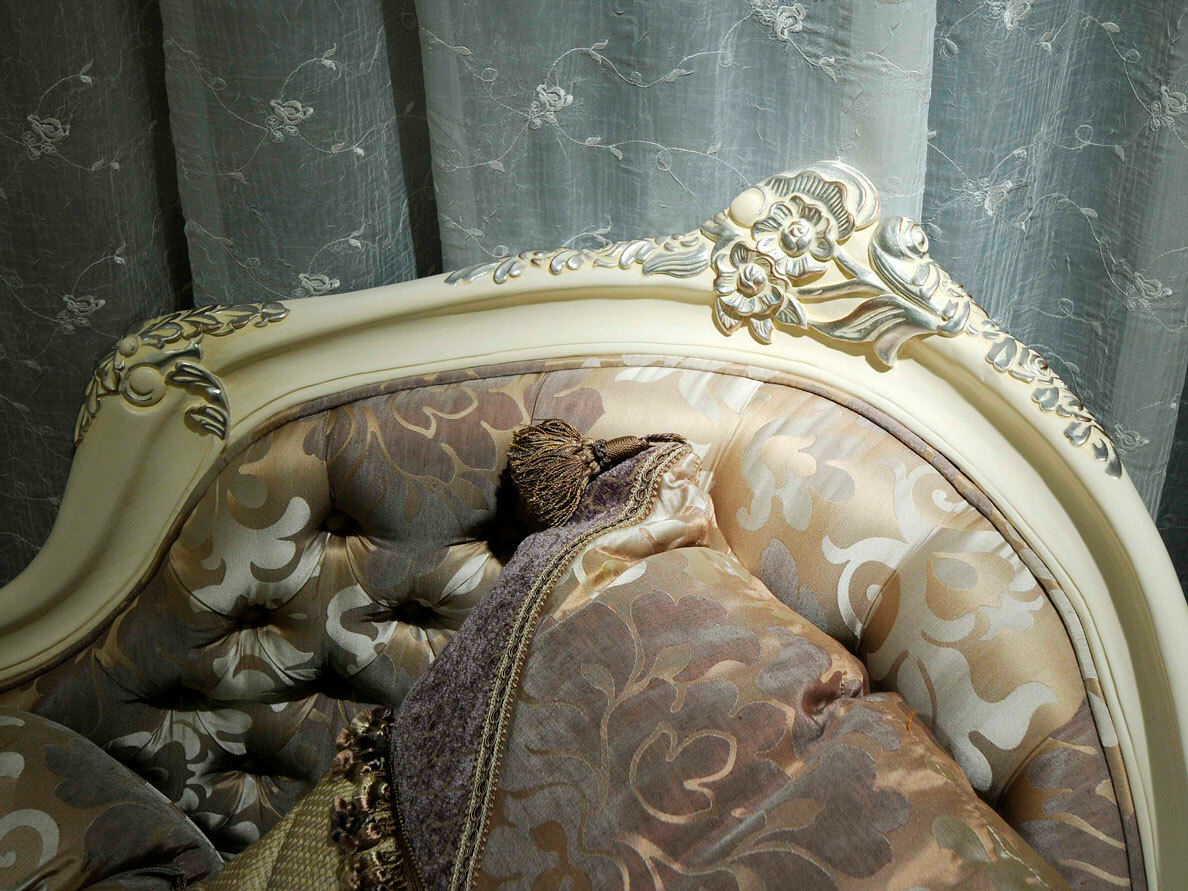 Предлагаем купить классическую кушетку из массива красного дерева с угловой спинкой (правая, левая) в стиле Людовик XV. Цвет: слоновая кость с серебряной, или золотой поталью. Блеск поверхности - шелковистый. На заказ возможны и другие расцветки. На банкетке возможна замена ткани на ткань заказчика. Исключительное качество производства на уровне лучших итальянских фабрик. Продажа классических банкеток премиум класса из массива дерева.