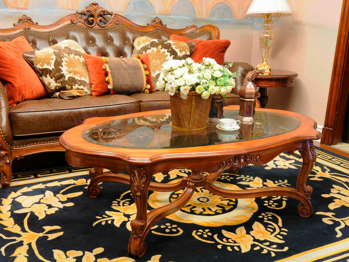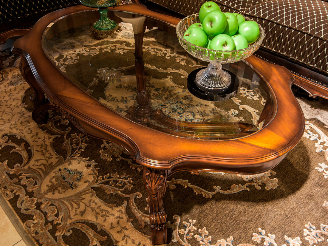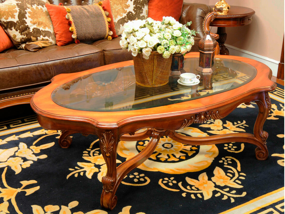 Предлагаем купить красивый, овальный, классический журнальный стол со стеклянной столешницей, из массива красного дерева. Цвет: орех с античной патиной. Блеск поверхности - шелковистый. В этой коллекции есть аналогичный круглый журнальный стол. Исключительное качество производства. Продажа классической мебели премиум класса.