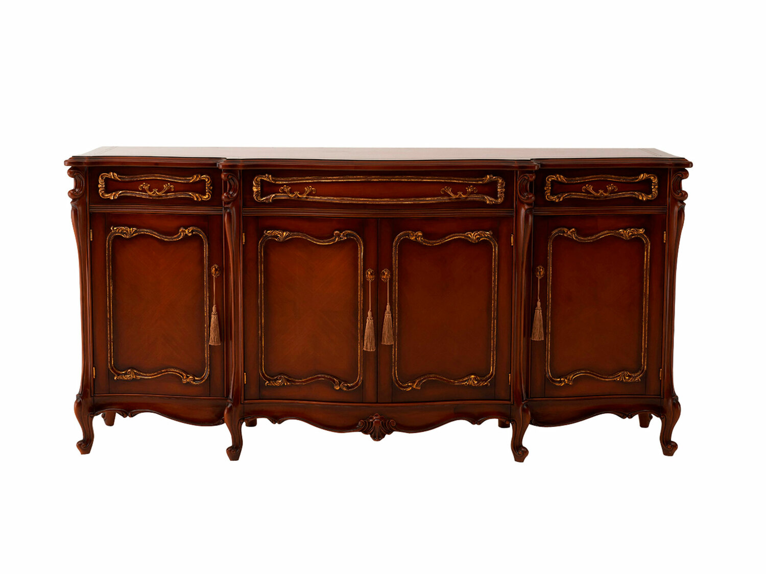 Предлагаем купить роскошный буфет для посуды с четырьмя дверцами и ящиками. Данный буфет входит в обширную коллекцию классической мебели для гостиной, спальни и кабинета. Материалы: массив красного дерева, патина, лак. Цвет: орех с античной патиной и состаренной золотой поталью. Идеальное качество исполнения.