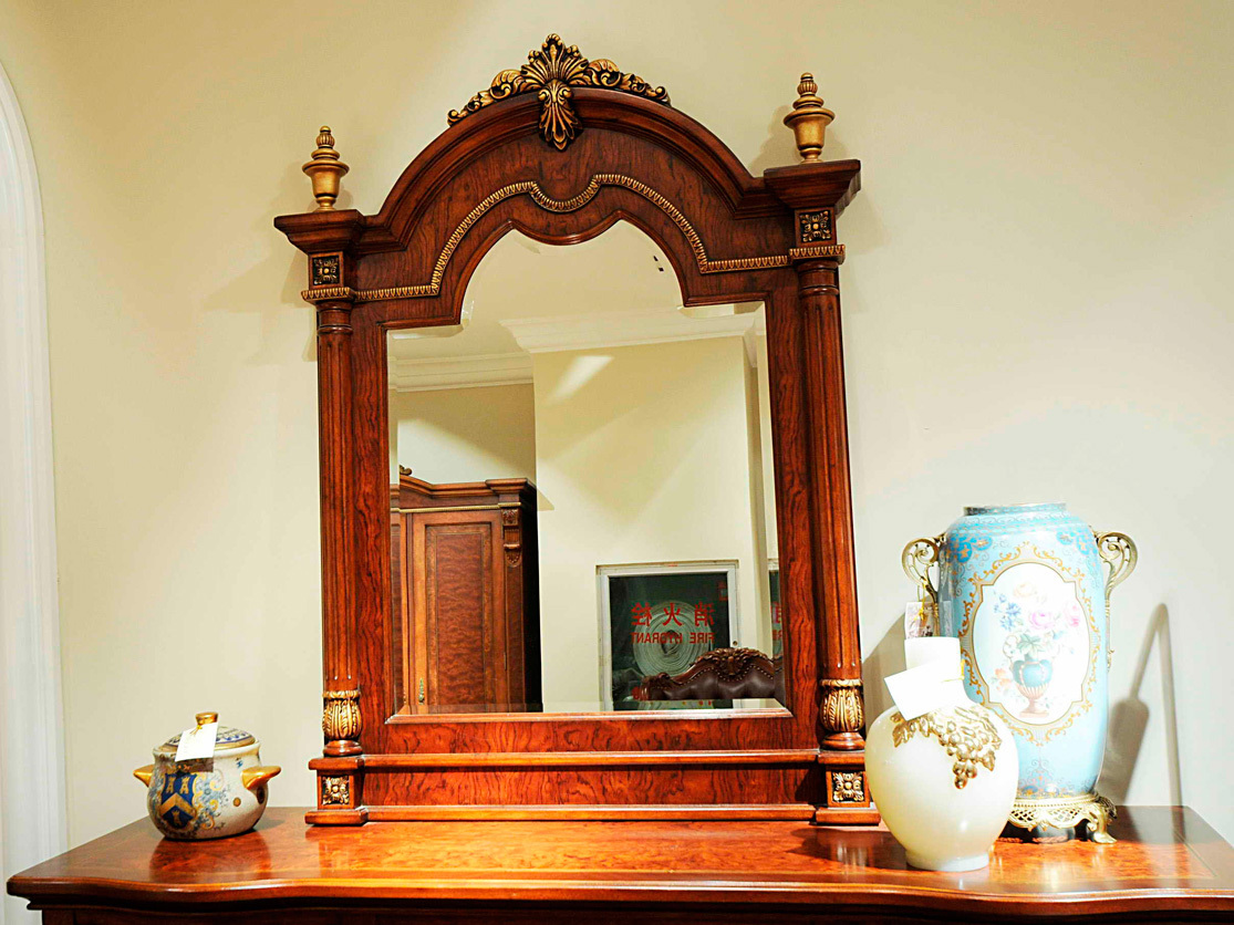Предлагаем купить красивое, классическое настенное зеркало из массива красного дерева, в цвете орех на заказ от поставщика мебели премиум класса в мебельном салоне. Исключительное качество производства на уровне лучших итальянских фабрик. Покраска под старину с патиной. Зеркало выполнено по периметру с фацетом. Некоторые декоративные элементы и резьба выделены античной бронзой. Массив и шпон красного дерева, шпон экзотического бубинго (волны). Лак, темная патина, классический цвет ореха. Продажа красивых, классических зеркал из дерева в цвете орех.
