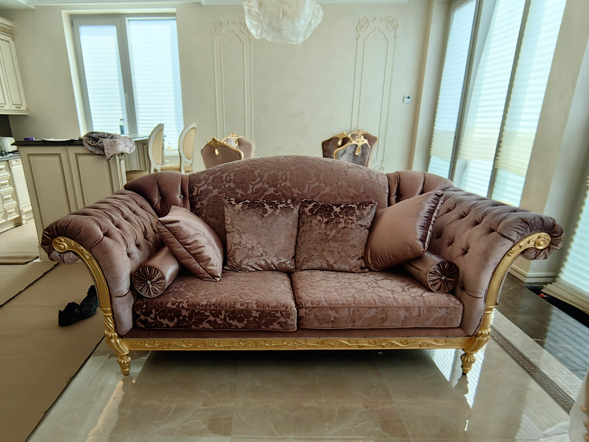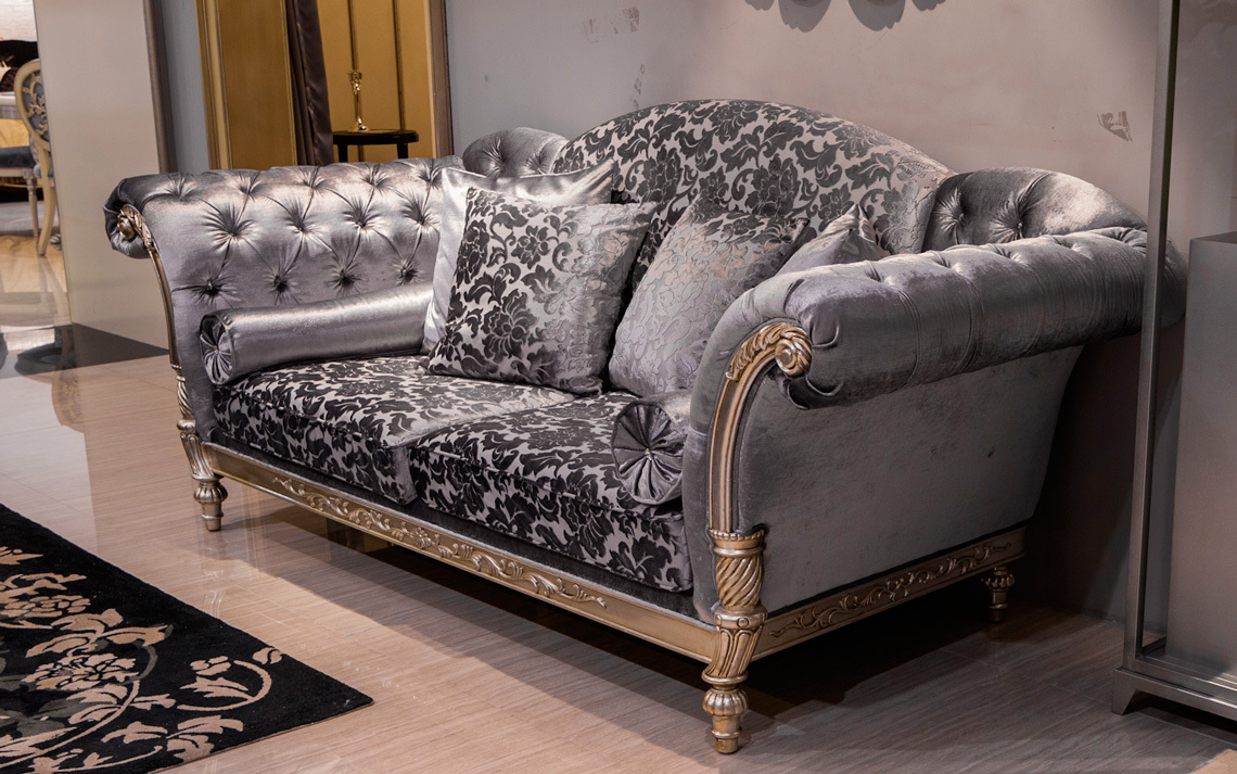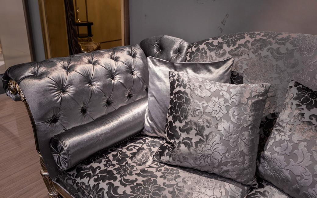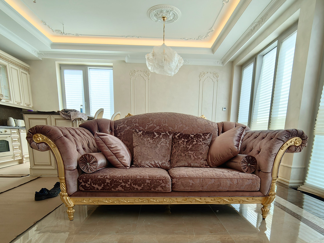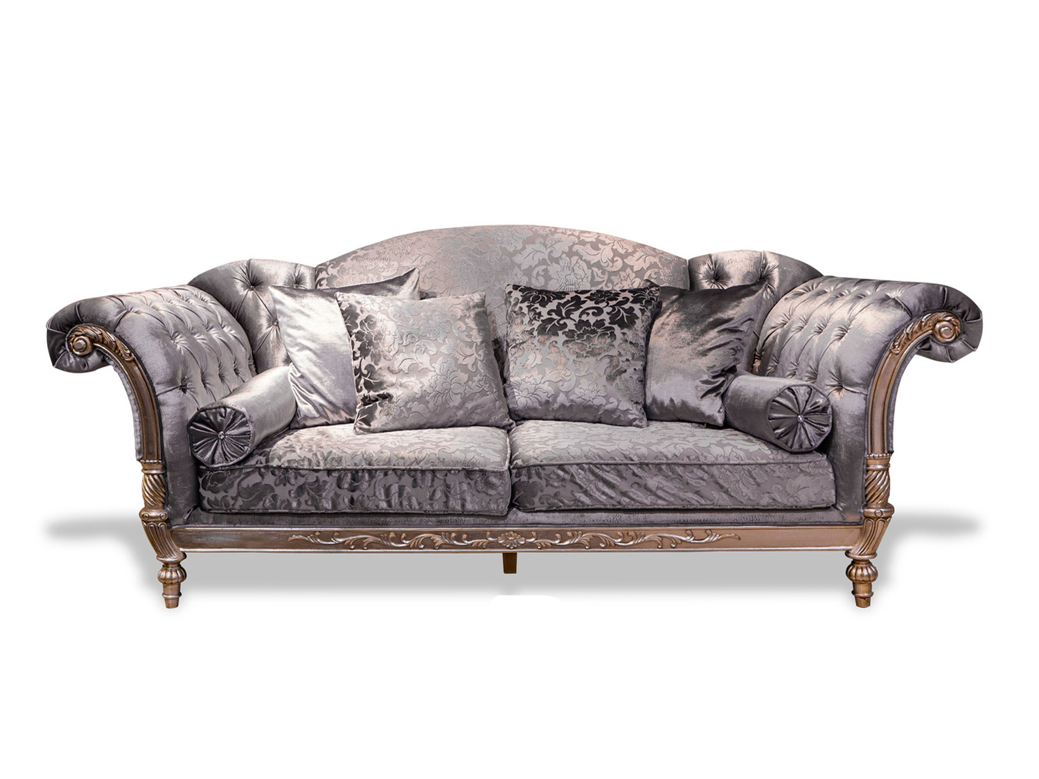 Предлагаем купить красивую реплику классического дивана из дерева фабрики Provasi. Диван выполнен в серебряной потали и переливающихся тканях хамелеон. Диван в наличии в мебельном салоне. Распродажа. Ширина посадочного места - 1670мм, глубина - 730мм. Представленные на фото образцы выполнены в тканях "хамелеон". Подушки поставляются в комплекте (2 валика и 550*500 - 4 шт.). Для облегчения заноса дивана, спинка может отстегиваться. Материалы - массив бука, сусальный серебряный лист, глянцевый лак. Продажа реплик итальянских диванов премиум класса.